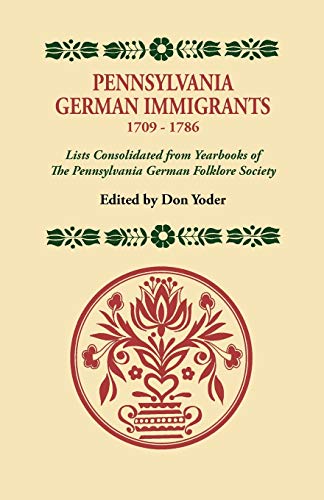 Pennsylvania German Immigrants 1709-1786 Lists Consolidated from Yearbooks of the Pennsylvania German Folklore Society