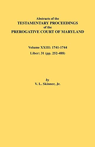 Abstracts of the Testamentary Proceedings of the Prerogative Court of Maryland - Volume XXIII - 1741-1744 Volume XXIII - 1741-1744